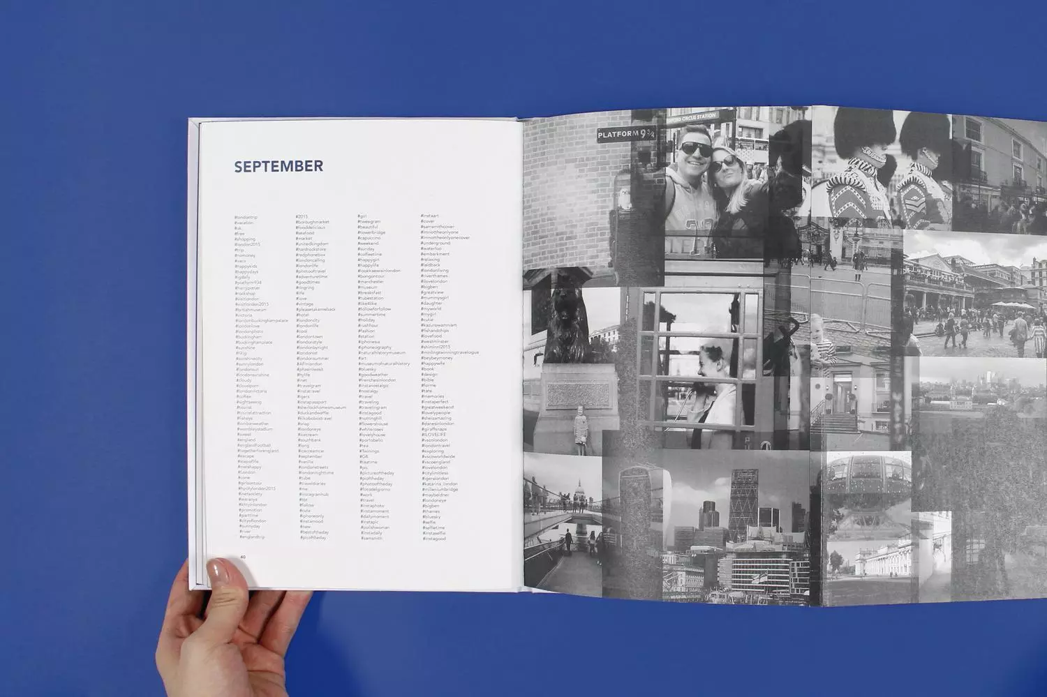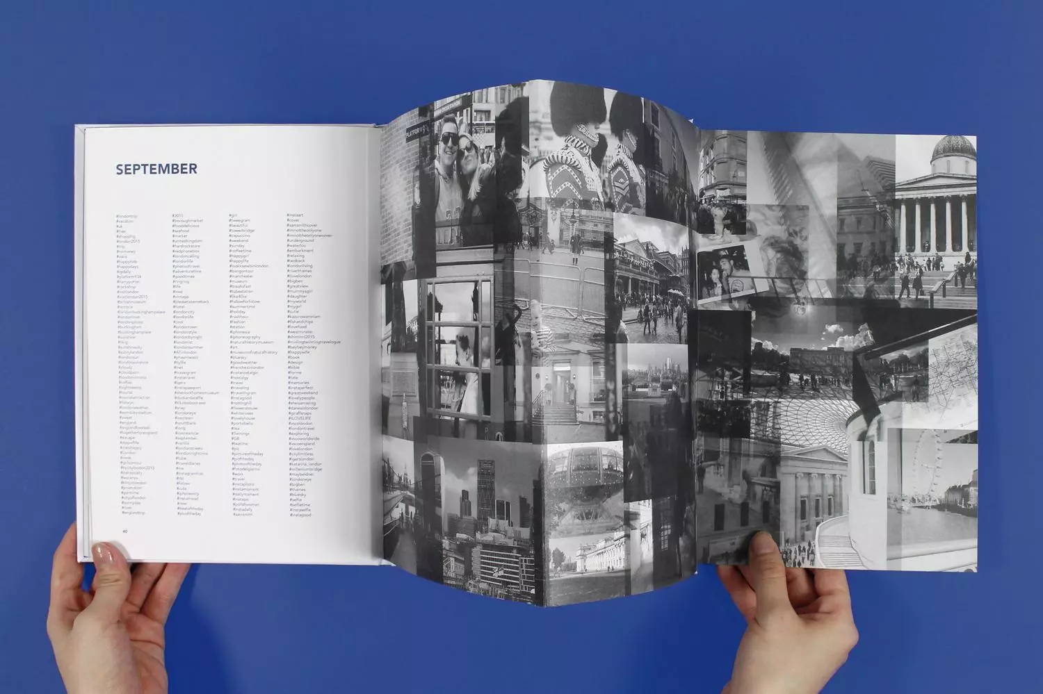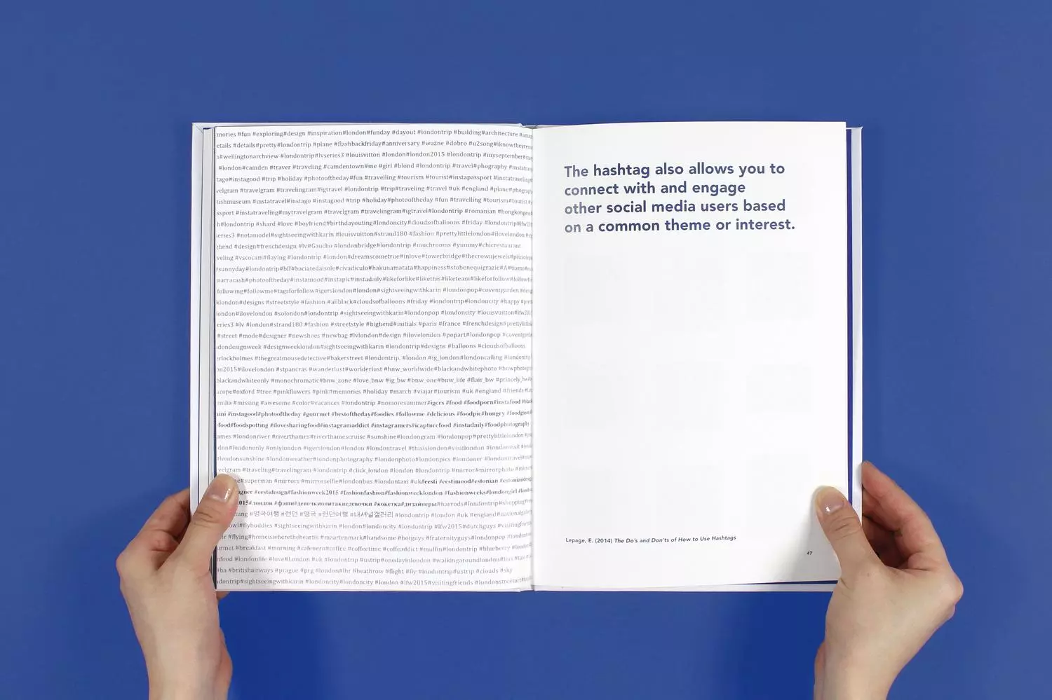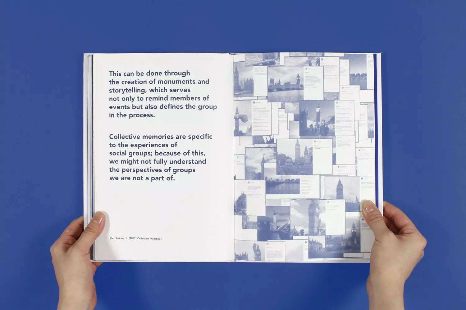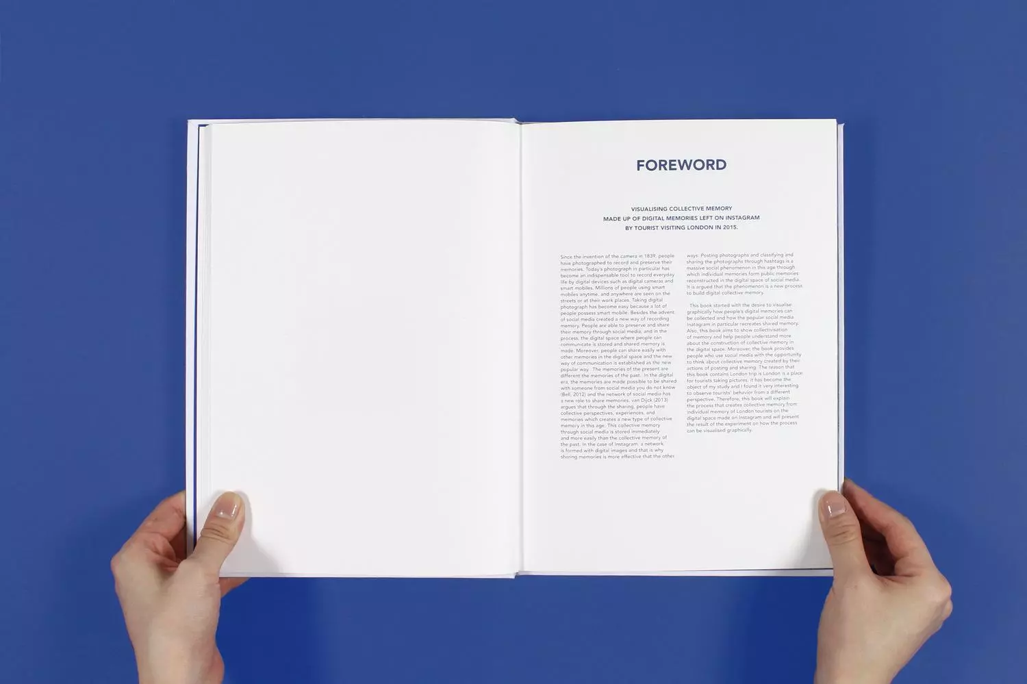 Personal Project 집단기억의 디지털 기념물: 인스타그램에서 디지털 메모리로 인해 만들어진 집단기억을 어떻게 시각화 할 수있을까? 이 연구는 디지털 공간에서 만들어지는 사람들의 디지털 메모리에 대해 생각하고 온라인상(인스타그램)에서 공유되는 기억들을 그래픽적으로 시각화하는 방법으로부터 시작됐습니다. 이 연구는 디지털 공간에서 쌓여가는 집단 기억의 구조에 대한 이해를 돕고, 기억의 집단화를 디자인적 방법으로 보여주는 목적을 가지고 있습니다. 소셜미디어를 사용하는 사람들에게 그들이 포스팅하고 게시물을 공유하는 행동으로 인해 만들어지는 집단 기억에 대해 한번 더 생각하게 합니다. 관광객과 주민이 공존하는 도시인 런던을 담은 디지털 메모리들이 어떻게 모여지고 담겨졌는지, 이미지와 해쉬태그 등 다양한 요소들로 표현하며 눈에 보이지 않는 디지털 메모리들을 연구하며, 그로 인해 만들어지는 런던에 대한 집단기억을 시각적으로 표현하였습니다.