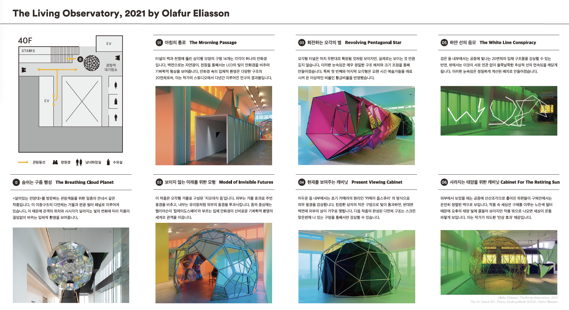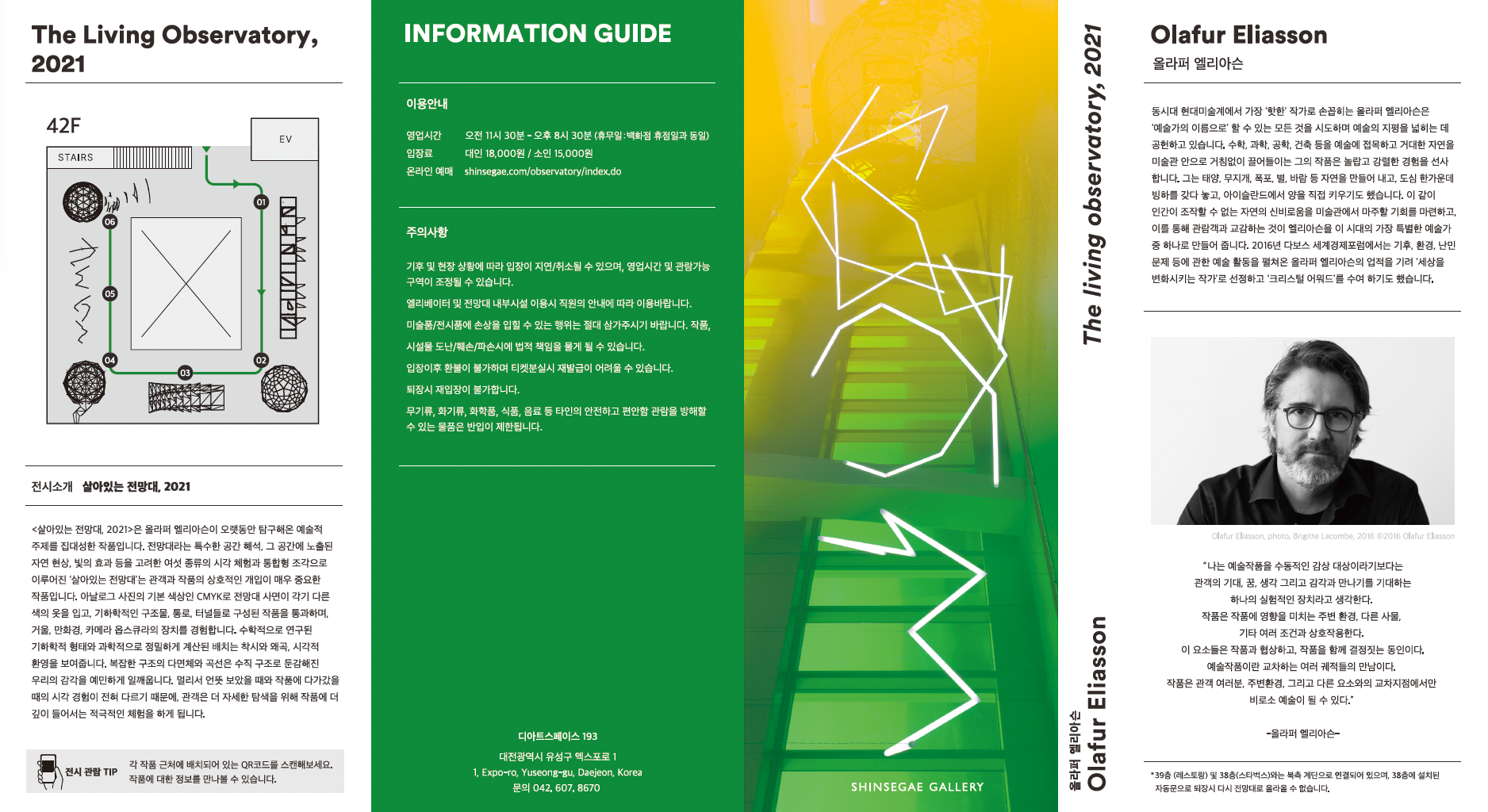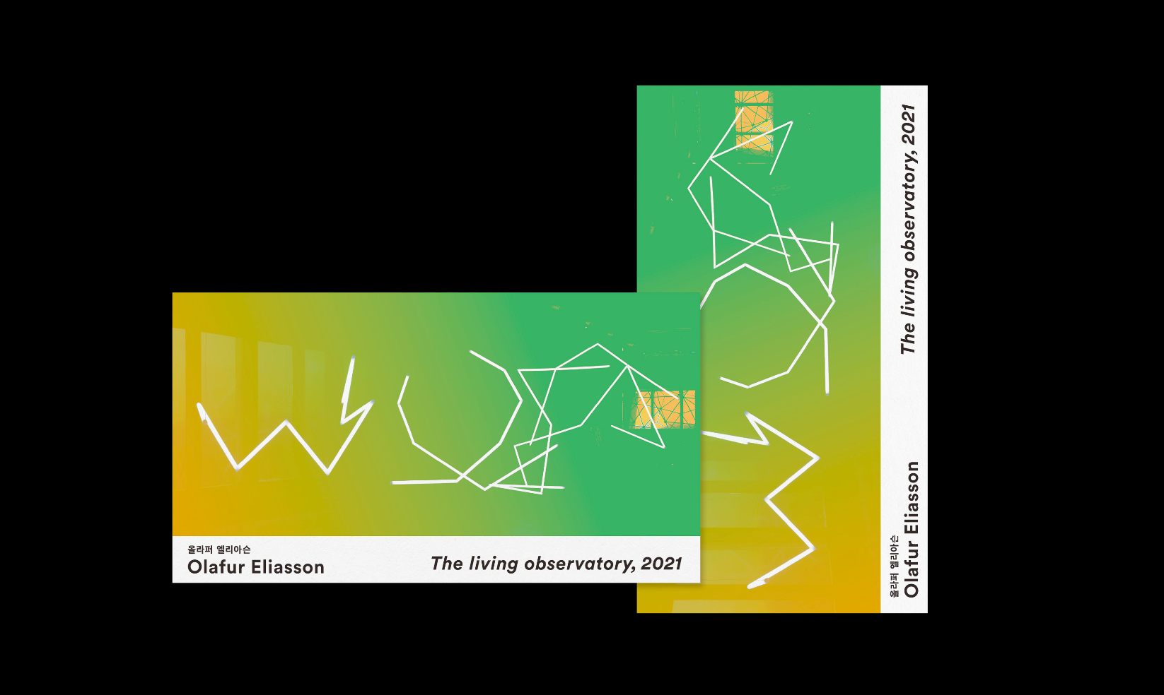 올라퍼 엘리아슨 브랜딩 올라퍼 엘리아슨은 빛과 색, 자연현상을 매개로 관람자에게 감각적 체험을 선사하는 현대미술 작가입니다. 신세계백화점 전시는 도심 속에서 자연과 빛의 움직임을 새롭게 인식하는 공간 경험을 목표로 기획되었습니다. 브랜딩은 전망대라는 장소성과 엘리아슨의 작품 세계를 연결하는 데 초점을 두었습니다. 태양·무지개·안개 같은 자연 현상을 단순화한 그래픽 모티프를 활용해, 작품의 주제를 직관적으로 드러내도록 디자인했습니다. 컬러 팔레트는 빛의 스펙트럼에서 추출한 그라데이션을 중심으로 구성했으며, 이는 엘리아슨 작품 특유의 몰입감을 강조합니다. 타이포그래피는 가볍고 유연한 구조를 사용해 ‘빛의 흐름’을 시각화했습니다.