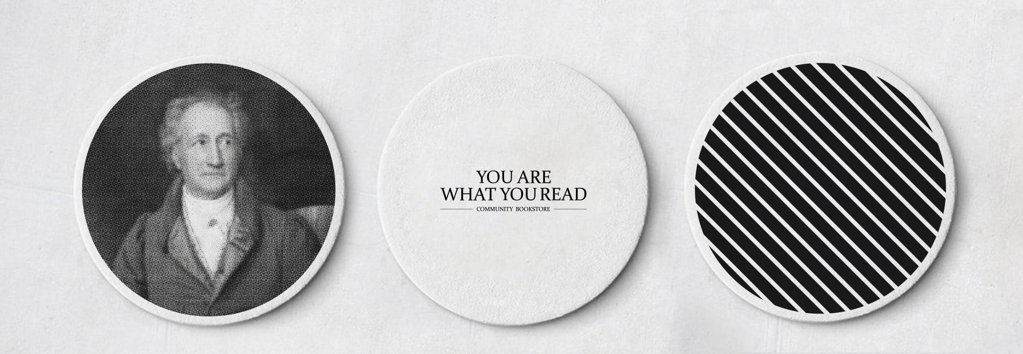 You are what you read You are what you read는 독립서적부터 베스트셀러까지 다양한 서적을 판매하는 작은 서점으로 서점의 고객을 위한 굿즈와 패키지를 제작하였습니다. 고전 작가들의 이미지와 문구를 활용하여 독서할 때 함께 사용할 수 있는 문구류, 컵 등을 제작하였습니다.